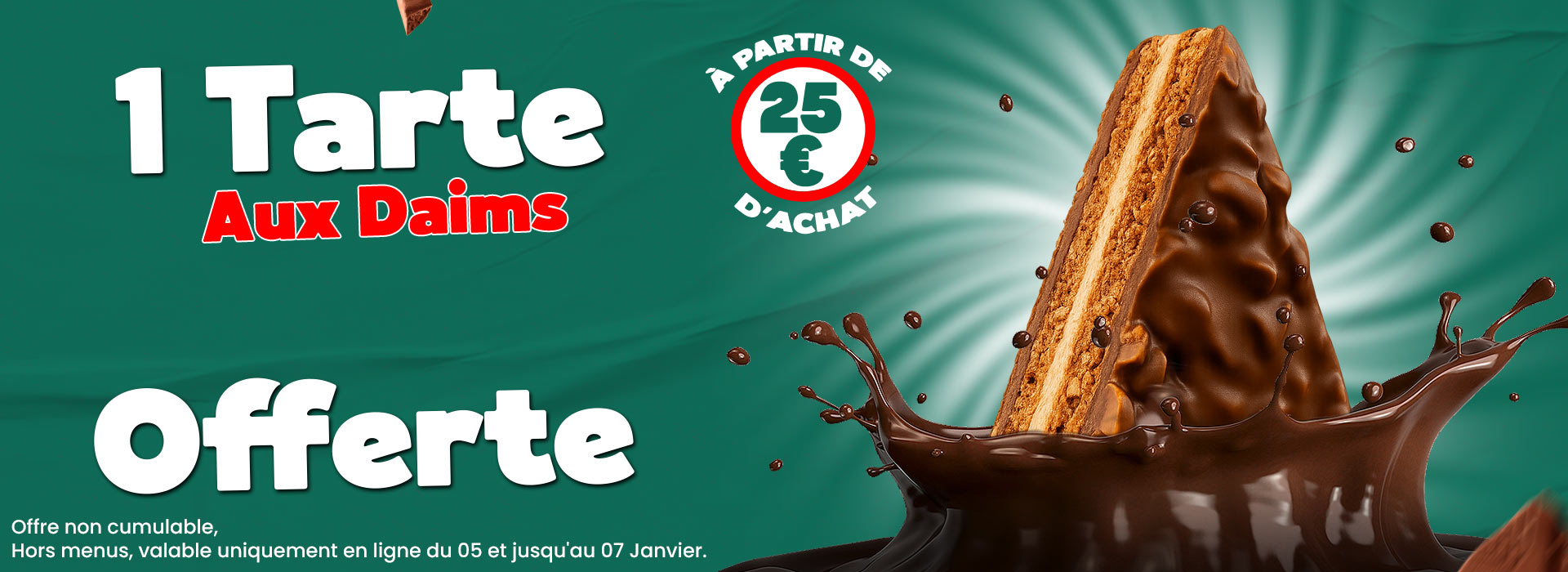 Toutes nos offres, codes promotionnels, messages SMS ou autres promotions en cours ne peuvent pas être cumulés avec nos menus ni entre eux.