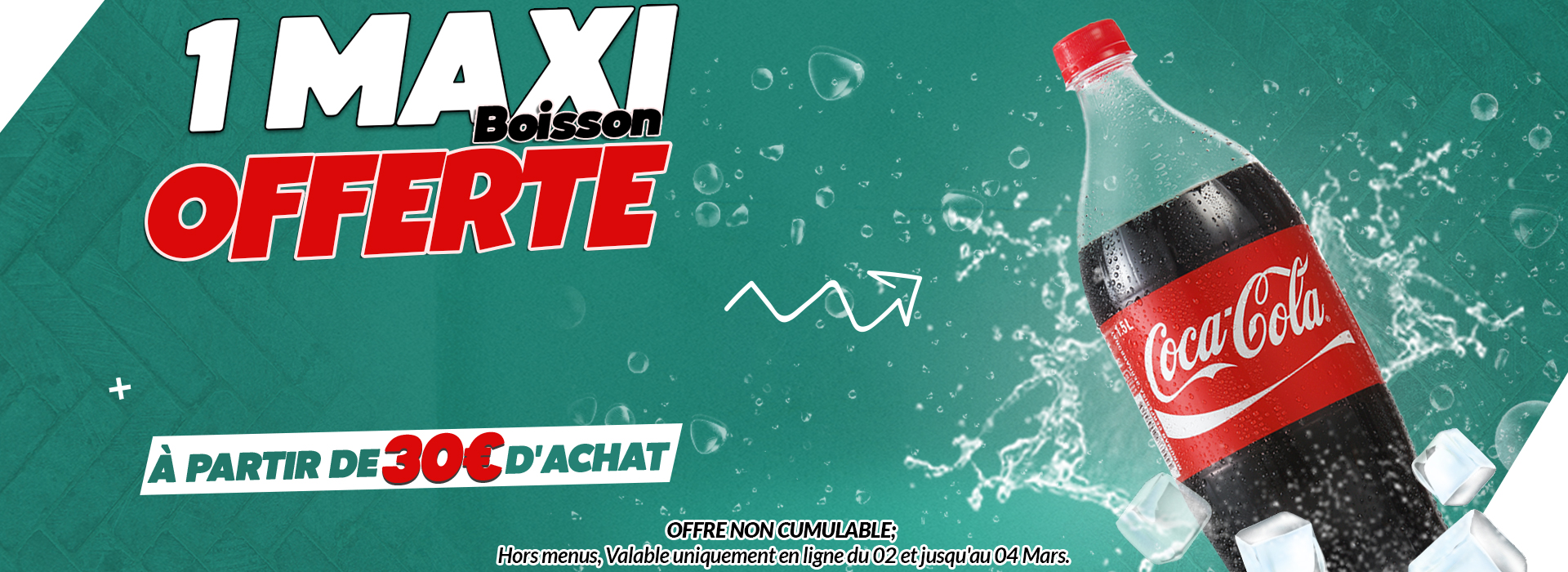 Toutes nos offres, codes promotionnels, messages SMS ou autres promotions en cours ne peuvent pas être cumulés avec nos menus ni entre eux.
